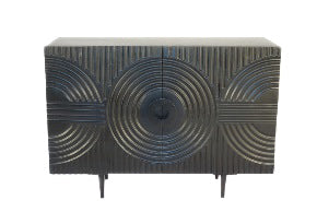 Sideboard i gediget trä (handgjort). Sideboardet har två rejäla skåp med runt handtag